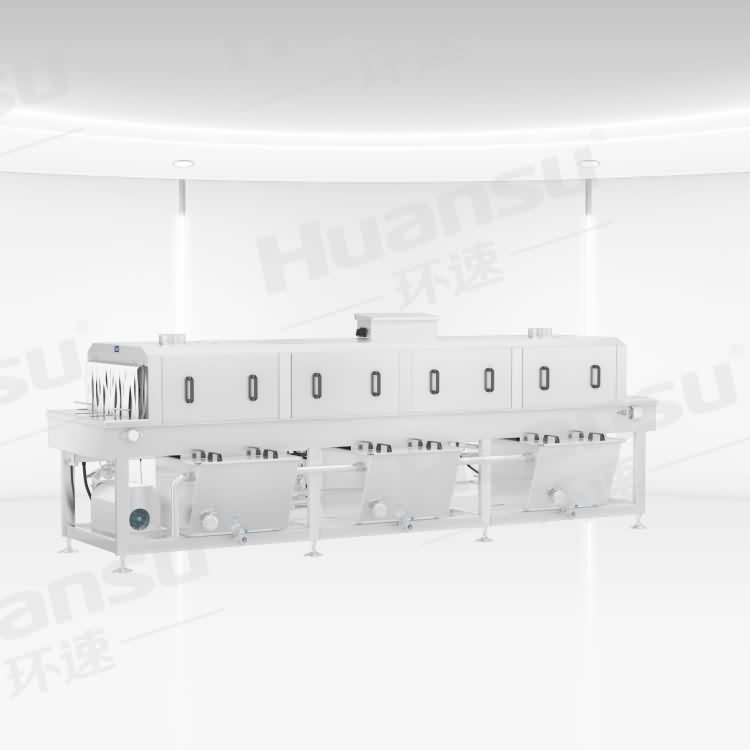 大型塑料筐清洗機清洗流程分為預洗、高壓清洗、漂洗、凈水沖洗四個階段,本機開啟后,由人工送料至噴淋清洗機鏈條軌道或由輸送連接自動進料,先進行浸泡;接著是高壓水流清洗以達到滅菌的作用;第三階段清洗水流漂洗容器表面污漬,進行再次滅菌;最后透徹沖洗,達到無菌的目的。我司自主研發的三級水箱控菌過濾系統確保循環用水無廢渣、大顆粒物質,保證清洗流暢、無堵塞。塑料筐清洗機具備權威檢測,經國外使用客戶對現場清洗后容器進行細菌檢測,清洗后容器的菌落總數<10。符合國家食品安全標準。