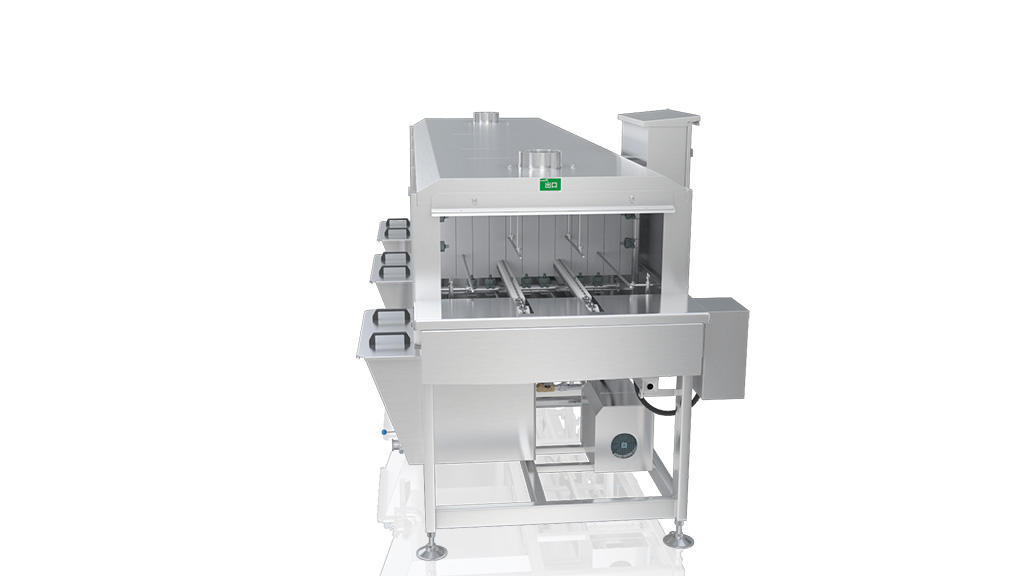 托盤式洗筐機(jī)設(shè)備浸泡水槽分成為兩個浸泡階段;