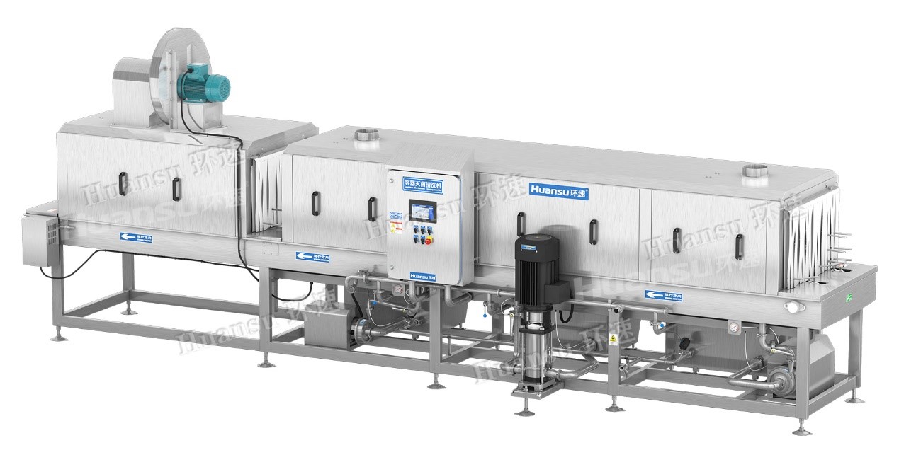 人們對于食品安全不僅僅是局限于食材安全等方面,也同時注重了容器方面的衛生情況。像家里用的刀具、筷子、盤和碗等方面的餐具,也開始使用各種小型家電進行高溫消毒殺菌,只為保障食品安全。而對于工廠來說,盛放食品的容器就像家中用的刀具、餐盤一樣,也需要在每次使用后進行高溫消毒殺菌,才能保障我們的食品安全。現如今,食品行業逐漸走上工業化,許多工廠開始選擇機械設備來代替人工進行清洗,但機械清洗也存在著許多弊端,如清洗不透徹、風干不透徹,清洗過程中需要添加大量清洗劑造成排放困擾等許多問題。為了解決這些難題,環速研發設計了塑料筐、盤清洗機,雙通道同時清洗,提高效率,使容器洗得透徹干凈。
